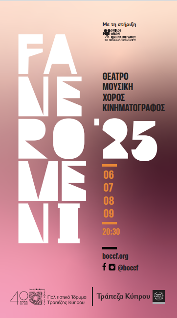For one more year, the Bank of Cyprus Cultural Foundation opens its courtyard in Faneromeni and invites you from 26 June to 11 September, to a beautiful Arts Festival to enjoy performances of music, dance, theatre, poetry and unique film screenings.