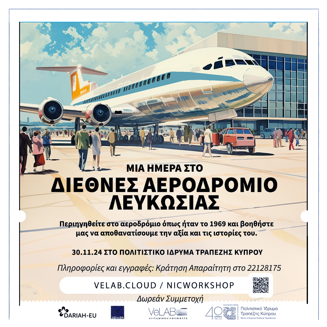 Ελάτε να εξερευνήσετε το αεροδρόμιο Λευκωσίας μέσα από μια εφαρμογή εικονικής αναπαράστασης, να ανακαλύψετε σπάνιο αρχειακό υλικό και να μοιραστείτε μαζί μας ιστορίες για το αεροδρόμιο καθώς και τις αναμνήσεις σας από αυτό.