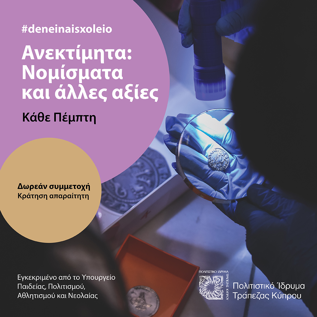 The educational program is directed to students aged 10-14 years old (Primary School 5 and 6 &Secondary 1 and 2) and aims to explore the concept of value through the children's acquaintance with the coinage collection of the Bank of Cyprus Cultural Foundation. The program takes place within the premises of the Museum of the History of Cypriot Coinage and includes a wide variety of museum activities. Students will have the opportunity to engage with ancient coins as well as to meet multiple types of values, the different ways in which value is formed and some of the relationships that the latter has with social, economic and political structures.