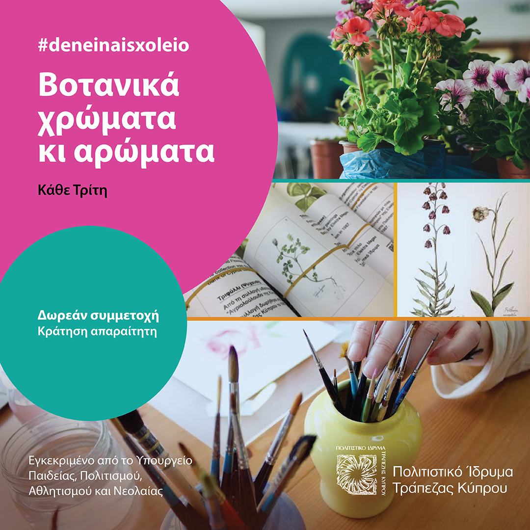 Children will spend their morning learning about Elektra Megaw, an illustrator who travelled across Cyprus with her husband, Peter, and his archaeological team, documenting rare Cypriot wildflowers and indigenous flora. Her work will be introduced, referring to forms she designed and various techniques she utilized, such as herb-collecting, dying and textile techniques.