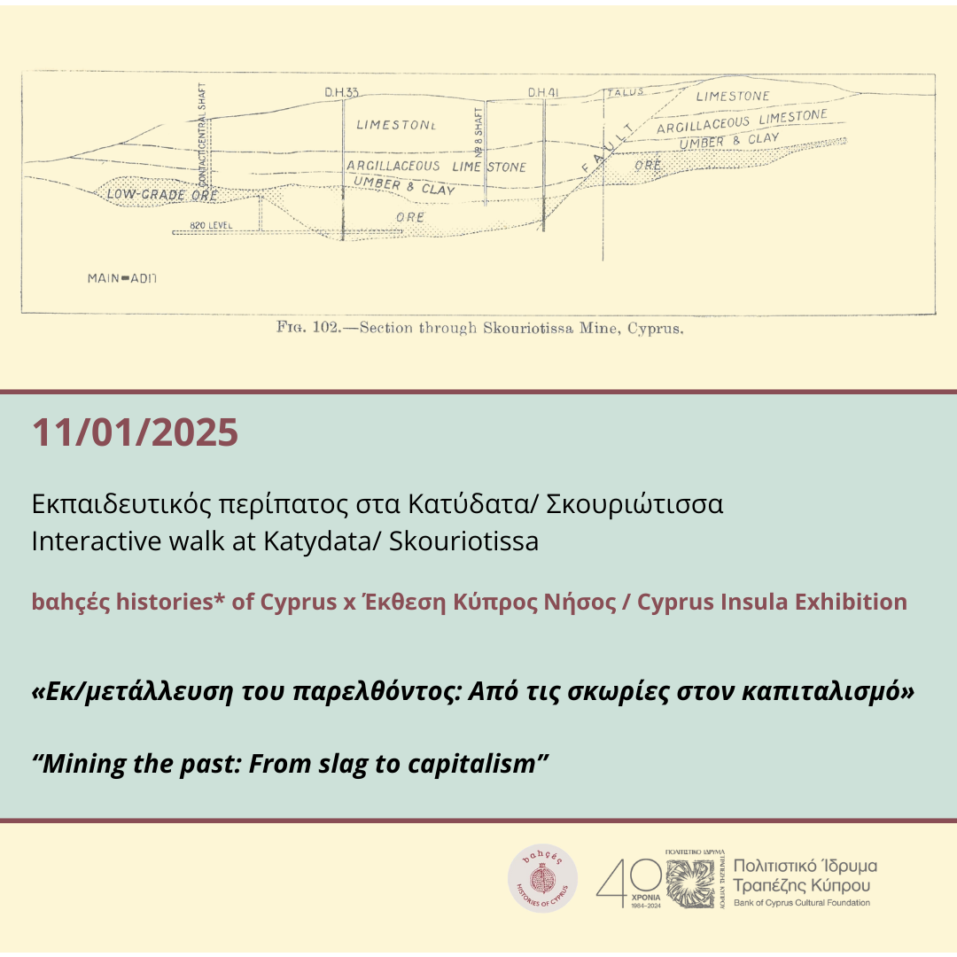 The Bank of Cyprus Cultural Foundation with the bahçes Histories* of Cyprus, announces a series of walks and invites you to the first walk at Katydata titled Mining the past: From slag to capitalism on Saturday 11/1/2025.