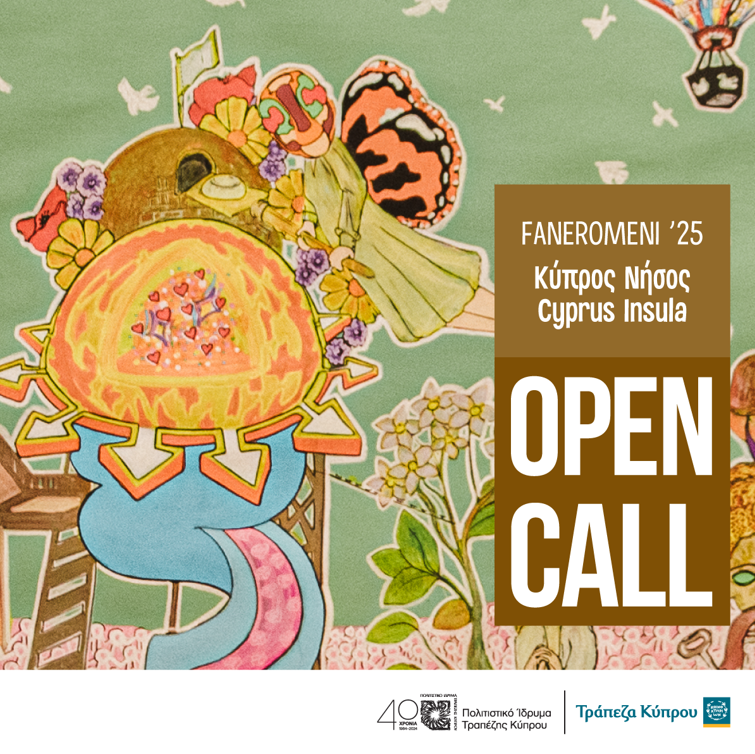 On the occasion of “Faneromeni 25” Arts Festival, scheduled to take place from June to September 2025, the Bank of Cyprus Cultural Foundation is pleased to announce an open call inviting artists and groups to submit their proposals for participation in the festival themed “Contemporary expressions of Cypriot identity” in dialogue with “Cyprus Insula” exhibition, which has been extended until the end of 2025.